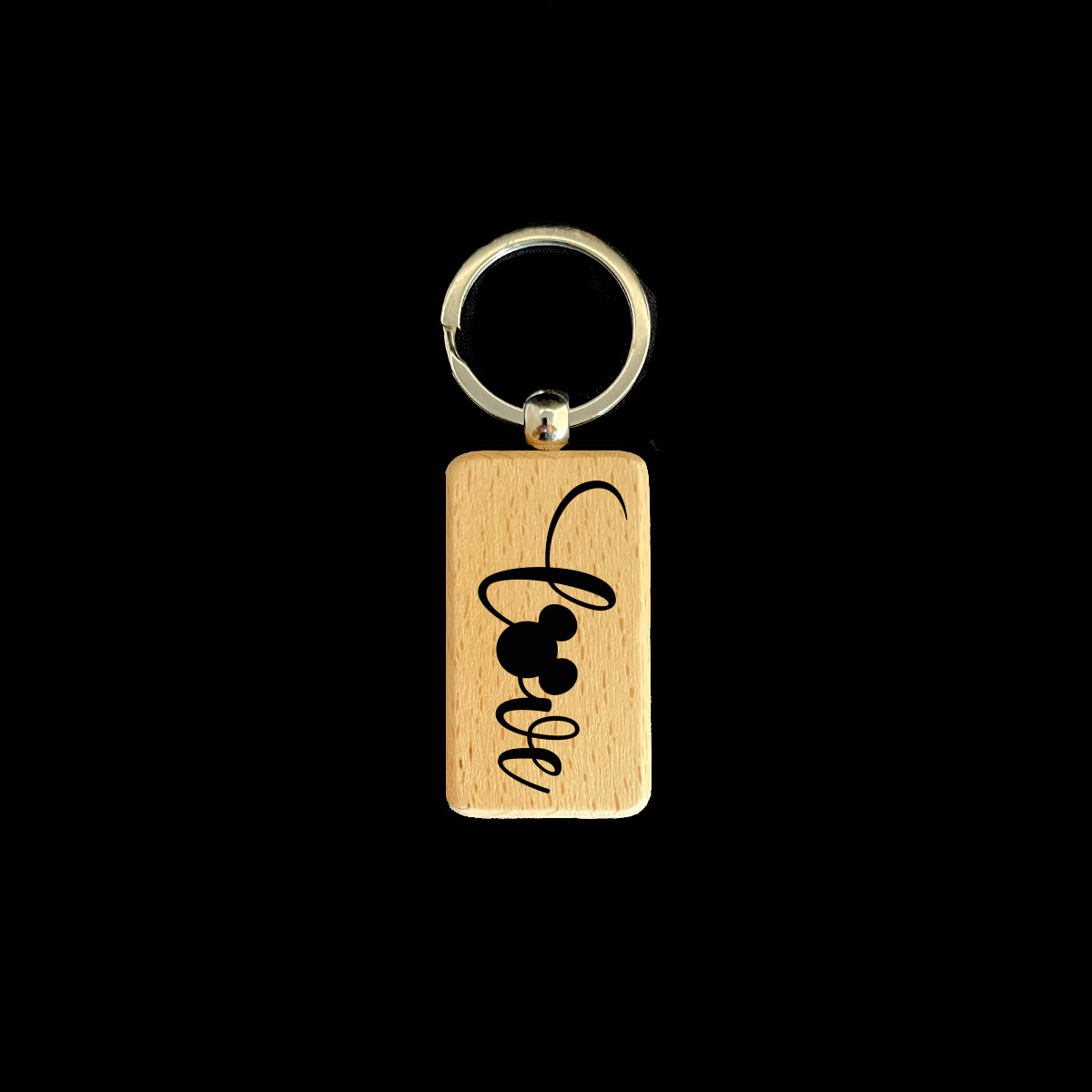 Show off your love for Mickey with this all natural, smooth wooden rounded rectangle approximately 1.2 x 2.1 inches, with a 1.2 inch split metal keyring.
