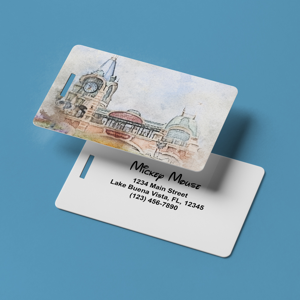 Featuring custom Shanghai Disneyland artwork, this heavy-duty, full-color printed plastic luggage tag—the same size and weight of a credit card—will serve you for years to come. Includes customization with your name, address, and phone number.